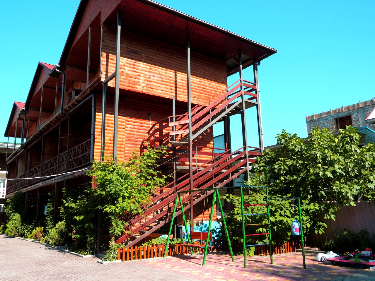 Гостиница построена по экологичной технологии из дерева, и идеально подходит даже для аллергиков.