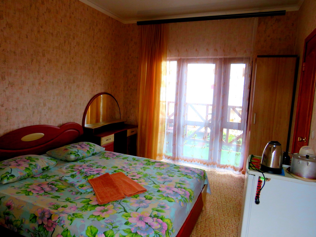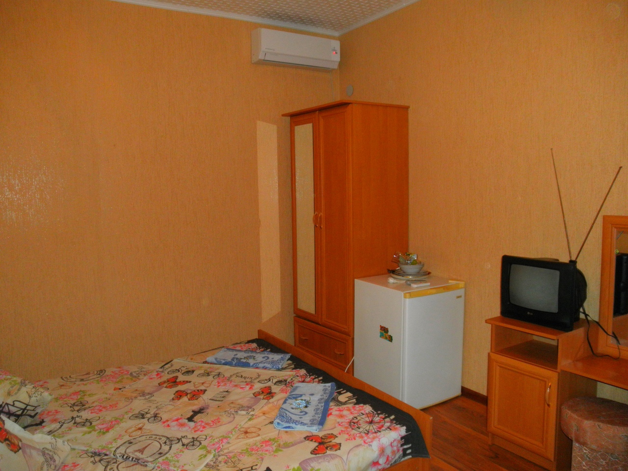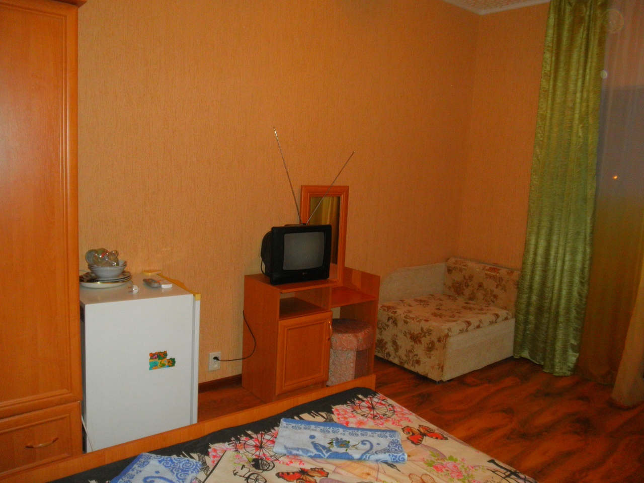 Стандарт. 2 этаж, с балконом На 3 человека, с удобствами в номере, горячая вода постоянно, телевизор, кондиционер, холодильник. |