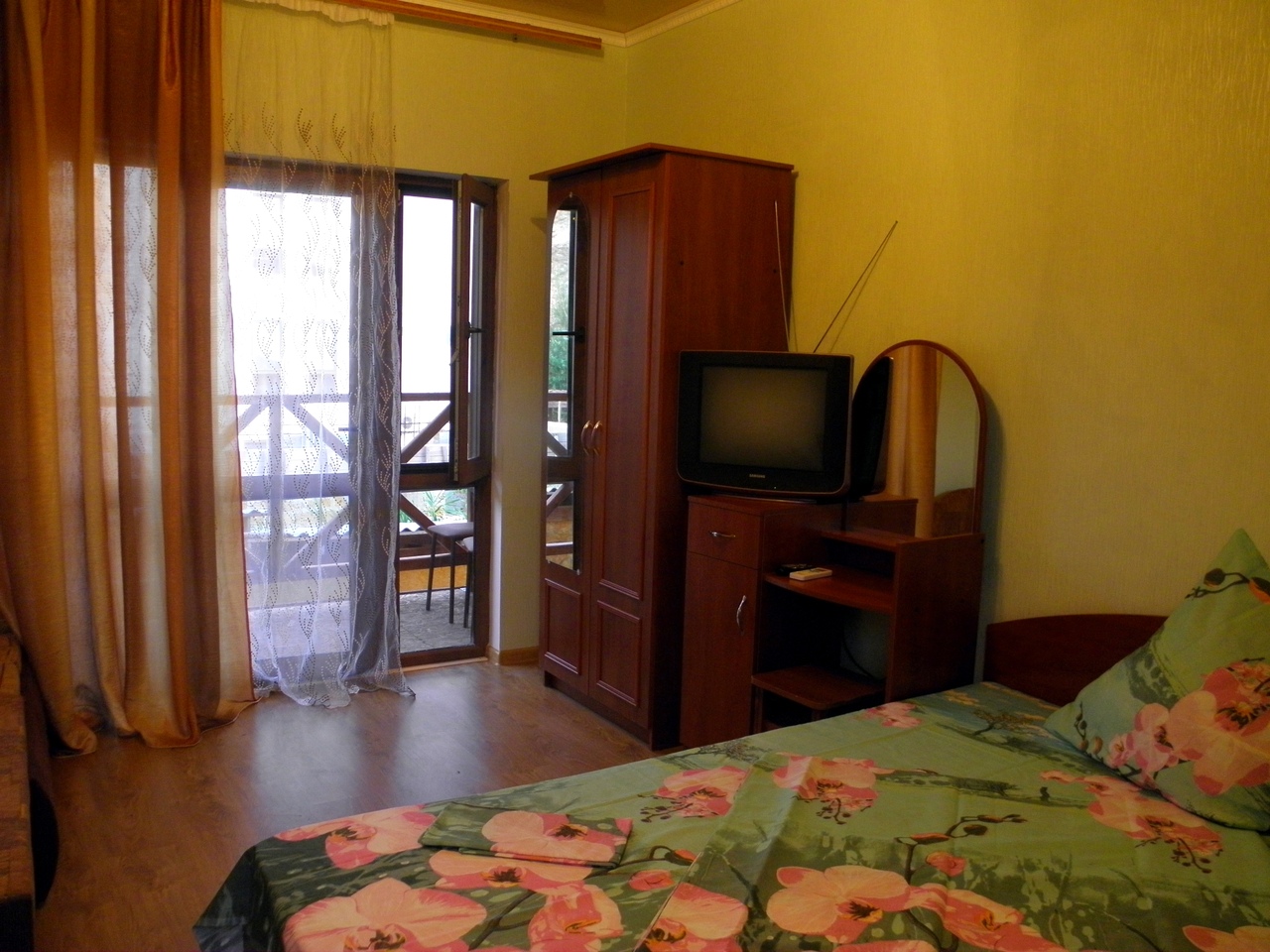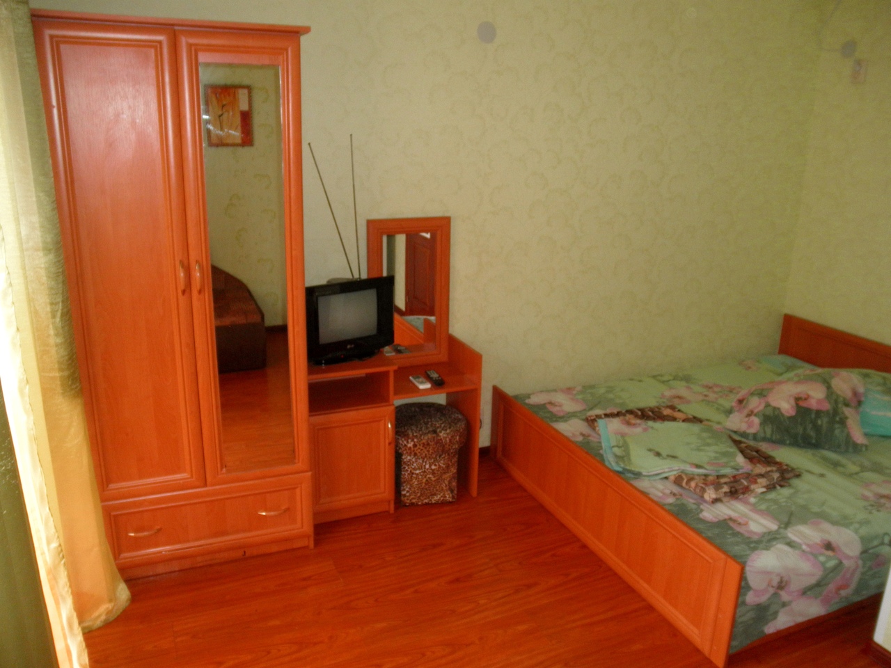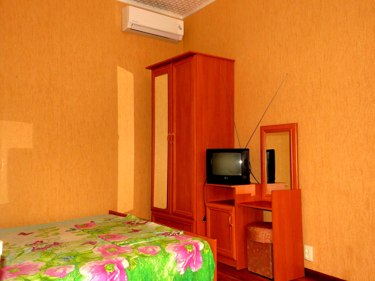 Стандарт. 2 этаж, с балконом На 3 человека, с удобствами в номере, горячая вода постоянно, телевизор, кондиционер, холодильник. |