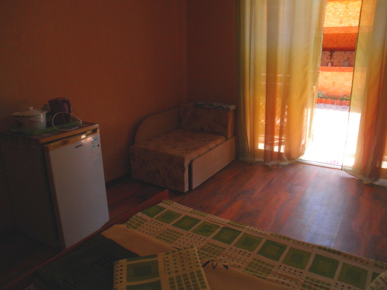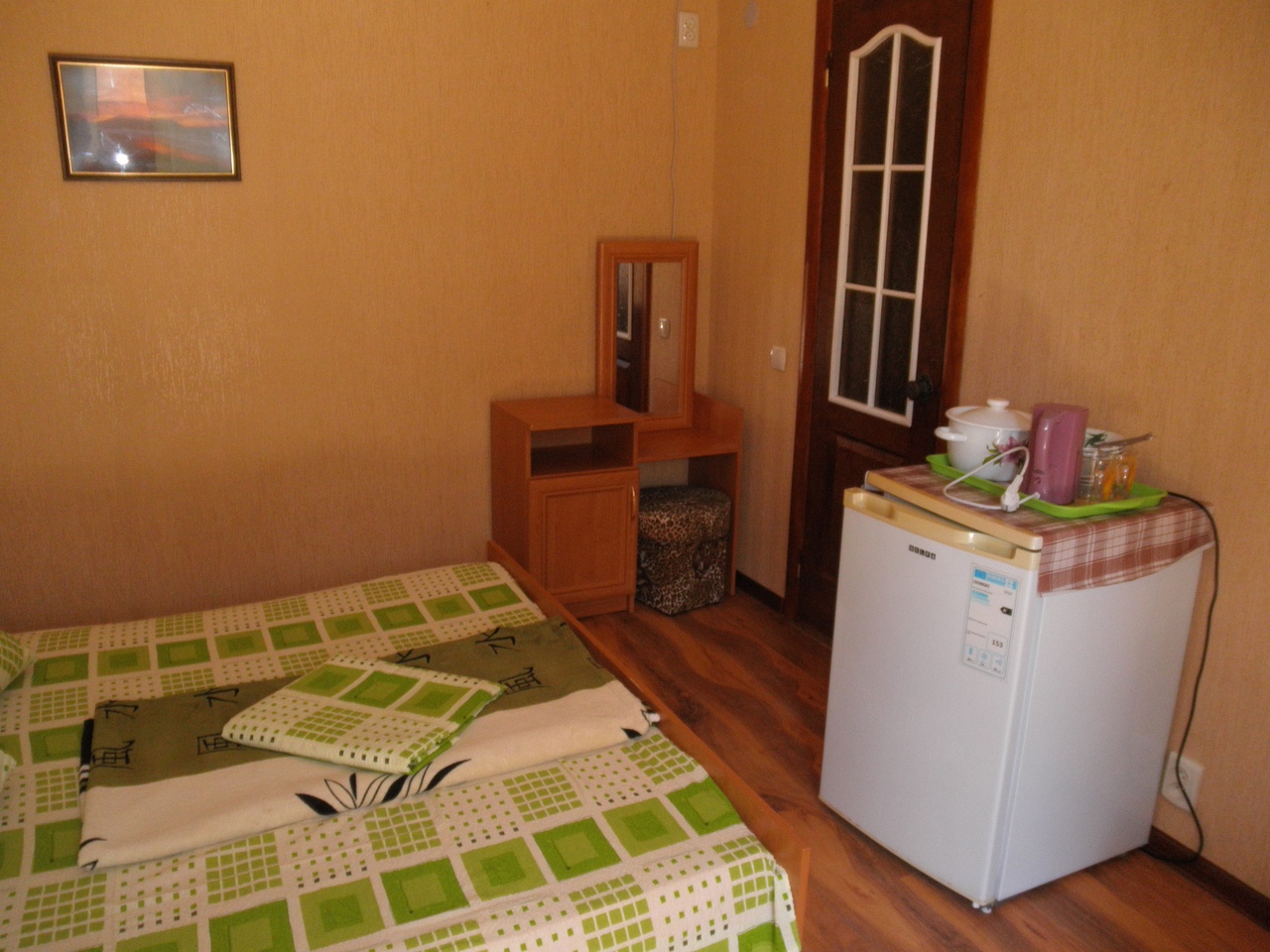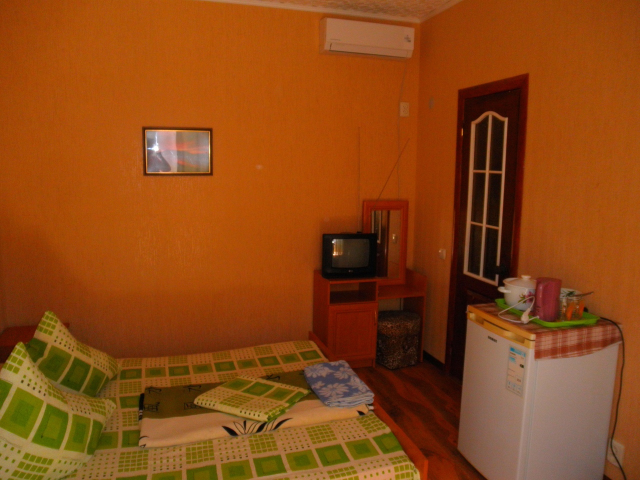 Стандарт. 1 этаж, с терассой На 3 человека, с удобствами в номере, горячая вода постоянно, телевизор, кондиционер, холодильник. |