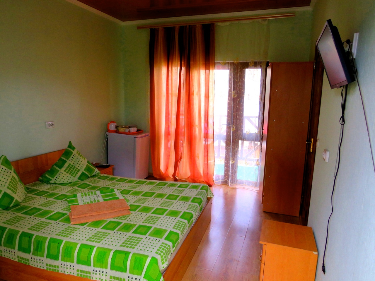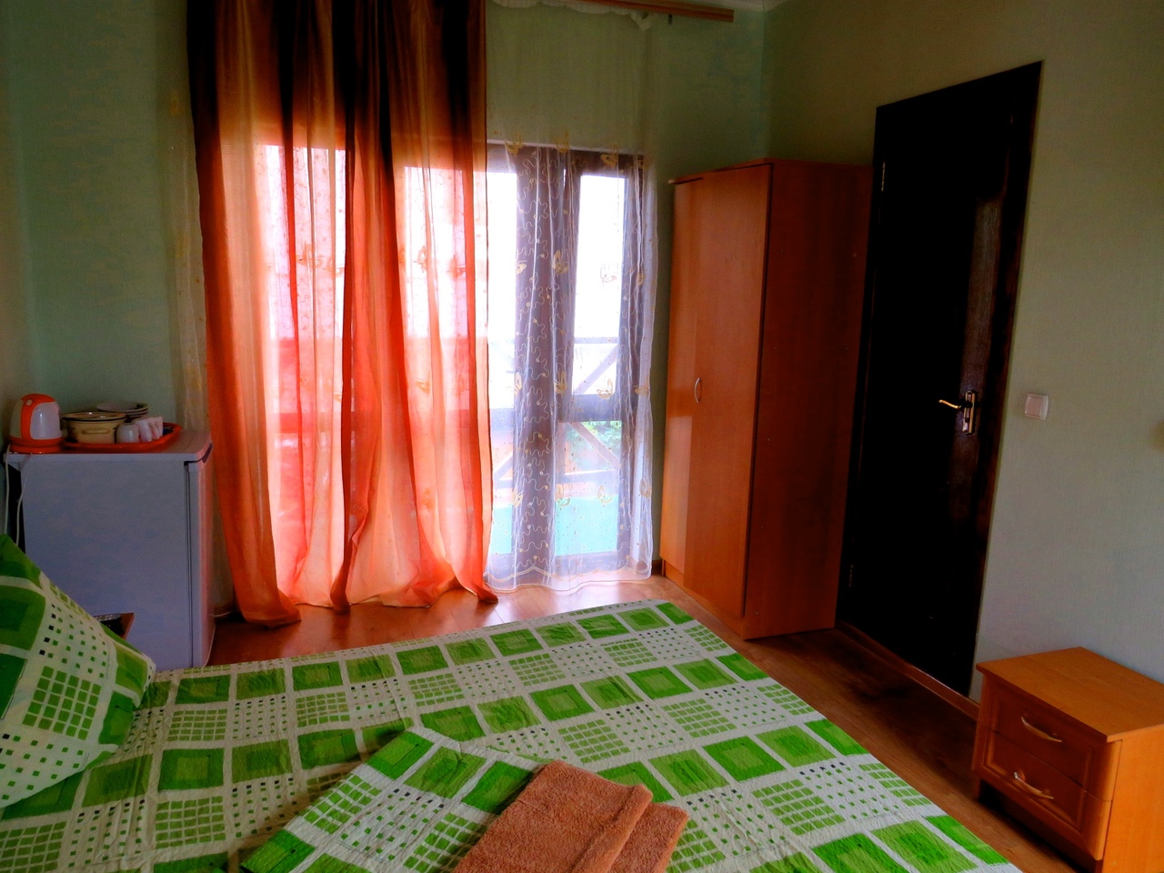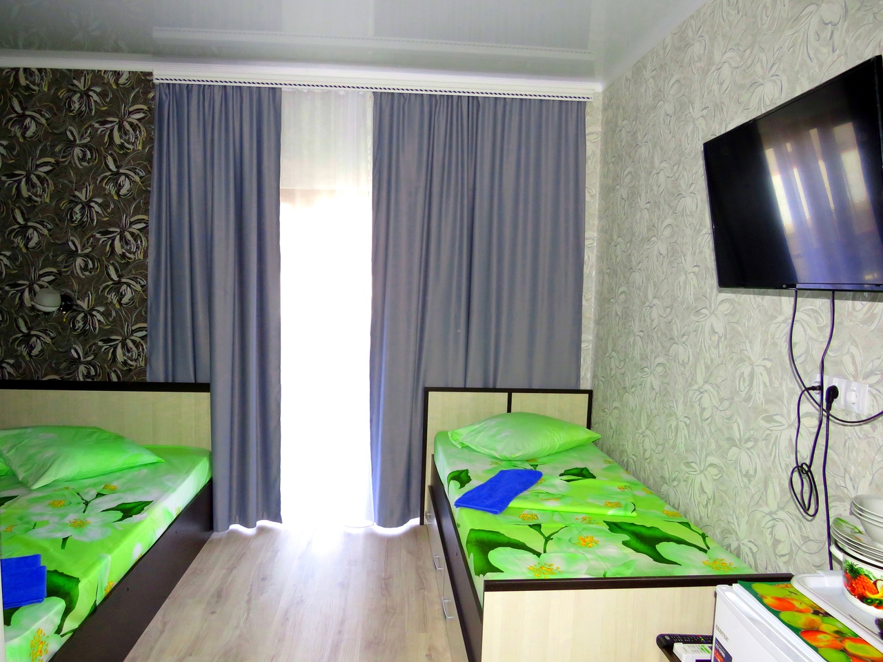 Новые! 2 этаж, с балконом На 3 человека, с удобствами в номере, горячая вода постоянно, телевизор, кондиционер, холодильник. |