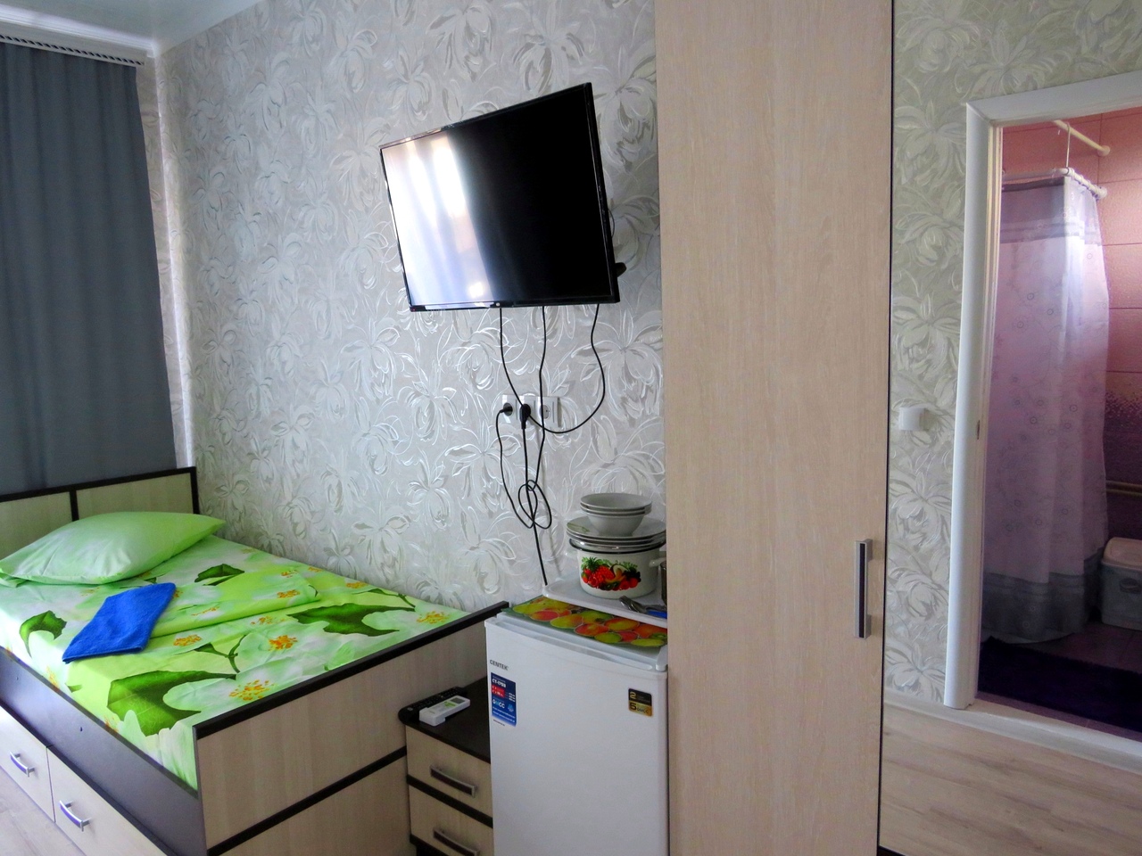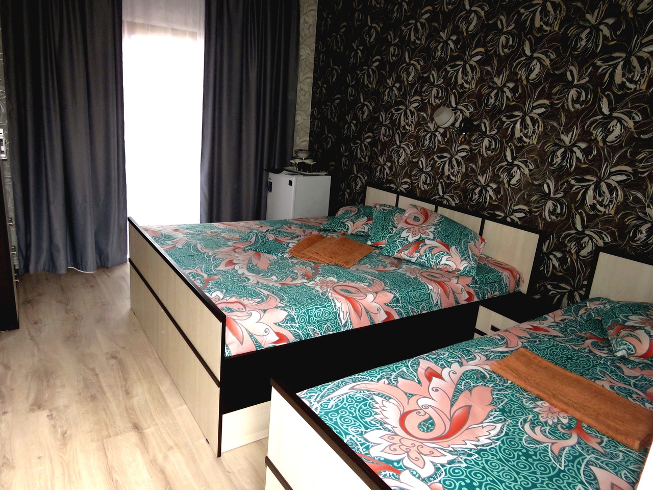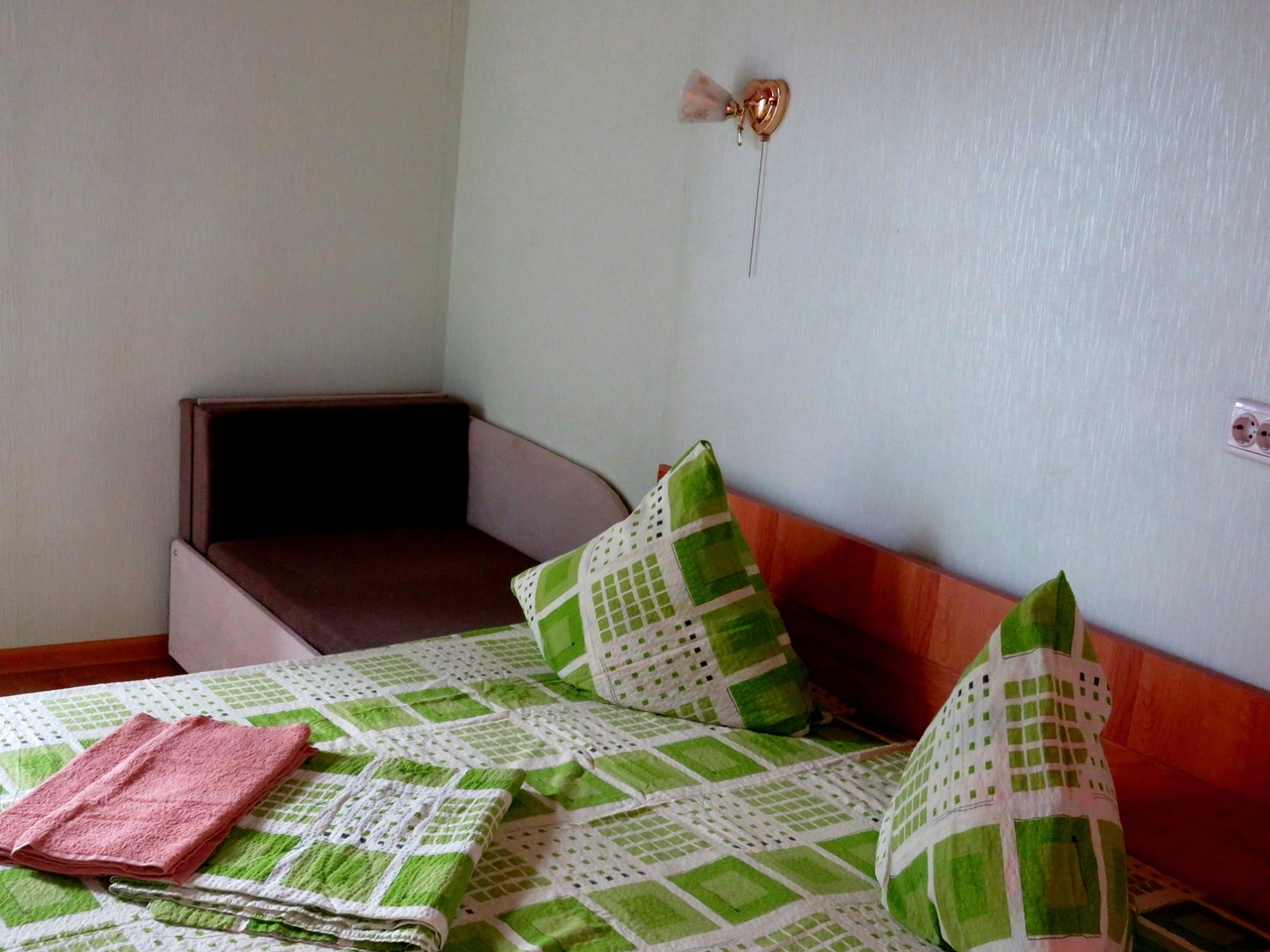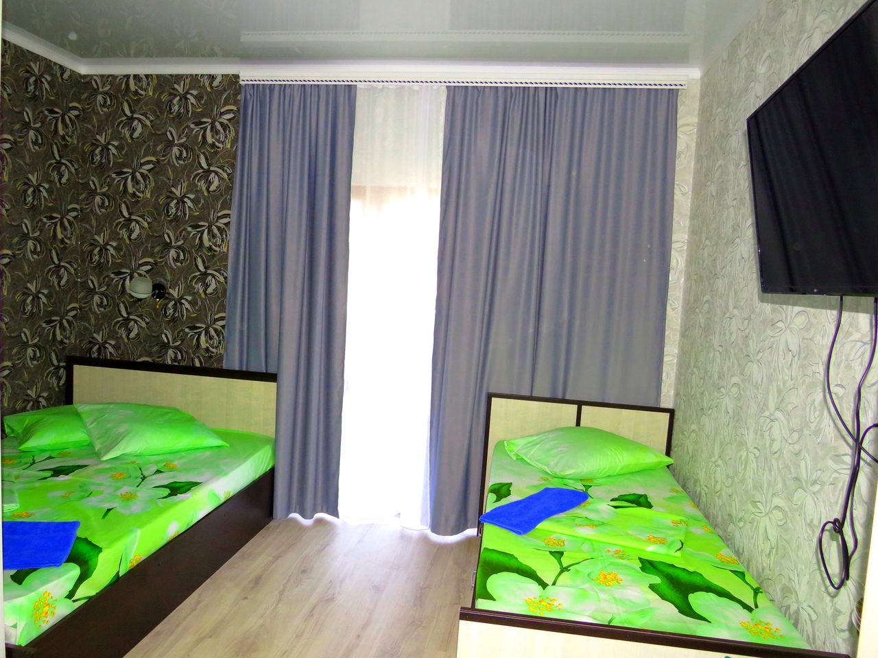 Новые! 2 этаж, с балконом На 3 человека, с удобствами в номере, горячая вода постоянно, телевизор, кондиционер, холодильник. |